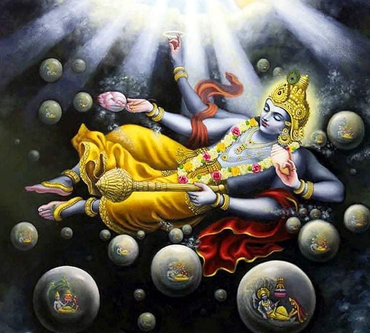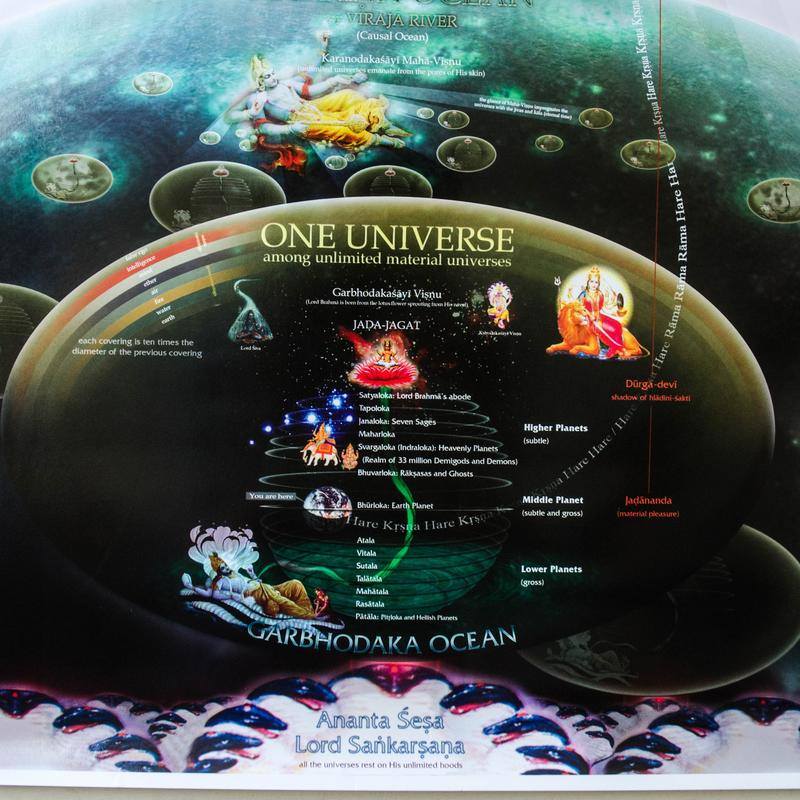 The material dimension of innumerable planets within innumerable universes regularly undergoes creation and then dissolution. At dissolution, the entire energy composing the material dimension is withdrawn within the Supreme Person, to be released when creation again takes place. The entire material dimension is an insignificant emanation of the Lord’s inferior energy and is controlled and destroyed by His energy called kala or time.